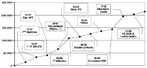 [9] Le recours à un système de « cache » informatique pour accélérer les consultations, après un véritable écroulement du site le jour de la conférence de presse du 9 septembre, ne permet pas de connaître le nombre réel de visites après cette date.