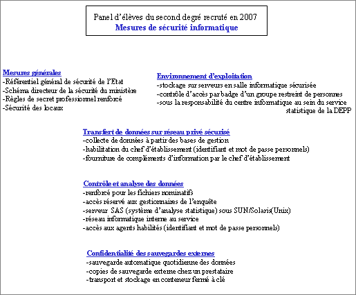 Comme cela vous avait déjà été précisé dans la lettre avis, je vous rappelle que cette enquête vise à recueillir de l’information sur un échantillon représentatif de 35000 élèves qui entraient pour la première fois en sixième en septembre 2007. Vos réponses seront étudiées à partir d’un fichier entièrement anonyme. Dans son exploitation, aucun lien ne pourra être établi avec votre enfant ou son collège.L’enquête a été soumis à la Commission nationale Informatique et Libertés (CNIL) qui a donné son accord.