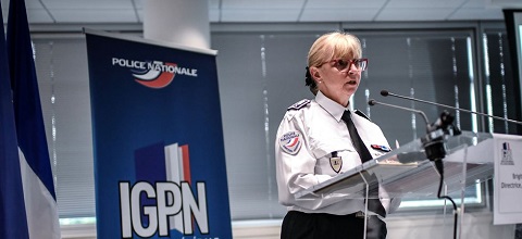 [1] Brigitte Julien, directrice de l’IGPN, lors d’une conférence le 13 juin 2019 à Paris. ©STEPHANE DE SAKUTIN / AFP