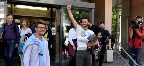 Info de dernière minute, procès renvoyé : "Le tribunal correctionnel de Gap a renvoyé au 8 novembre le procès sur le fond des trois militants poursuivis pour avoir aidé des migrants à entrer en France en avril, pour une question de constitutionnalité en cours d’examen.