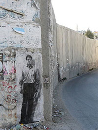 Ernest Pignon-Ernest a effectué un travail similaire en Cisjordanie autour de portaits du grand poète palestinien Mahmoud Darwich.