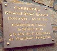 Début septembre 2003, nous avons, dans un souci d’apaisement, proposé à Hubert Falco de remplacer l’inscription actuelle de la plaque par celle de "Colonel Salan - Libération de Toulon - août 1944".