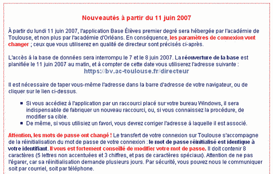 jusqu’au lundi 18 juin 2007 à 09h00 (au moins)- changement du mot de passe à l’initiative de
