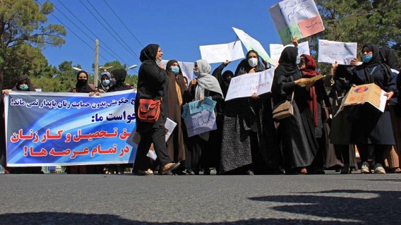 "Une cinquantaine de femmes sont descendues jeudi dans les rues d’Hérat, capitale cosmopolite de l’Ouest afghan, pour revendiquer leur droit à travailler et réclamer la participation de femmes au nouvel exécutif. « C’est notre droit d’avoir une éducation, du travail et la sécurité », ont chanté à l’unisson les manifestantes. « Nous n’avons pas peur, nous sommes unies. » [1]