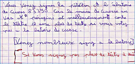 Au vu des faits énoncés ci-dessus, nous souhaitons vivement connaître votre position que nous ne manquerons pas de relayer, face au caractère illégal des différentes actions engagées par le nouveau Maire de Cuers à l’encontre de la Cie Orphéon (qui dispose d’une convention dûment signée) et aux atteintes portées au développement de la vie artistique et culturelle varoise.