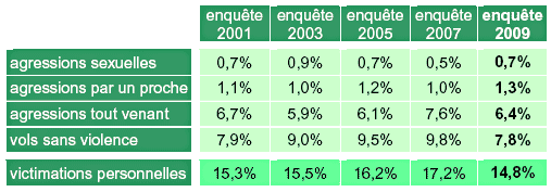 de ce type. Les premiers résultats de l’enquête 2009 ayant été publiés au début de l’été, on dispose désormais d’une série 2001-2009, que l’on peut comparer avec les statistiques de police.