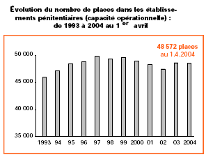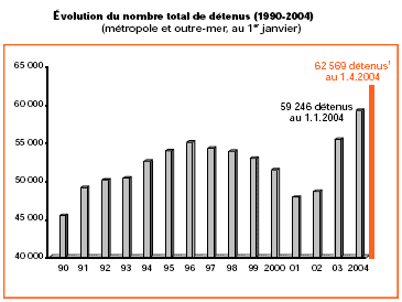Au 1er janvier 2009, les prisons françaises contenaient 66 178 détenus pour 50 500 places. Grâce à une loi de 2002, 13 200 places nouvelles seront créées d’ici 2011 portant la capacité à 64 000 places.