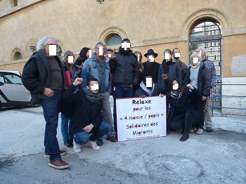 Le 15 novembre, à Aix-en-Provence, les membres du Collectif Migrants 83 sont venus soutenir les "papis" et les "mamies" entendu-e-s au Tribunal pour avoir aidé des migrants et condamné-e-s, en mai, à Nice à 800 € d’amende chacun. [6] Lire leur témoignage : https://citoyenssolidaires06.com/?p=3468
