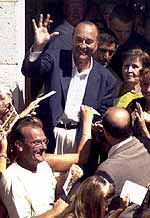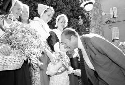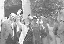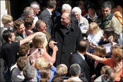 J. Chirac à la sortie de la messe, à Bormes, le 12 août 01.