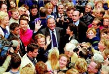 A sa sortie, une heure et demie plus tard, la foule était encore plus dense, les badauds accueillant le chef de l’Etat et son épouse d’une salve d’applaudissements et cherchant à lui serrer la main ou à lui glisser quelques mots de sympathie.